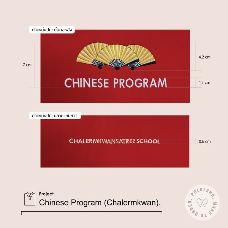 ปัก 3 ตำแหน่ง (หน้าอกซ้าย+กลางต้นคอหลัง)